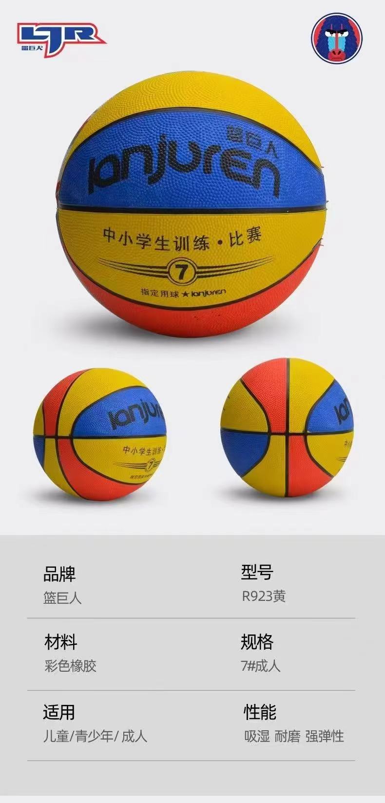 | R923篮巨人7号彩色橡胶(红黄蓝) | |||